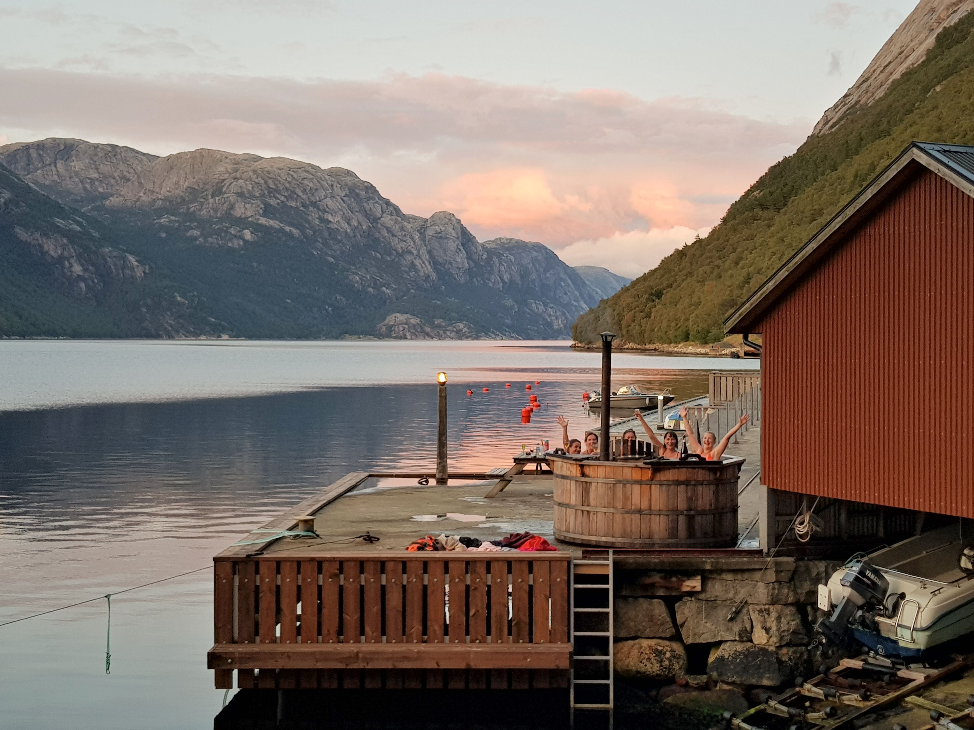Camping and rental tents: Right down by the fjord, you can stay reasonably priced, with a fabulous view over the Lysefjord!