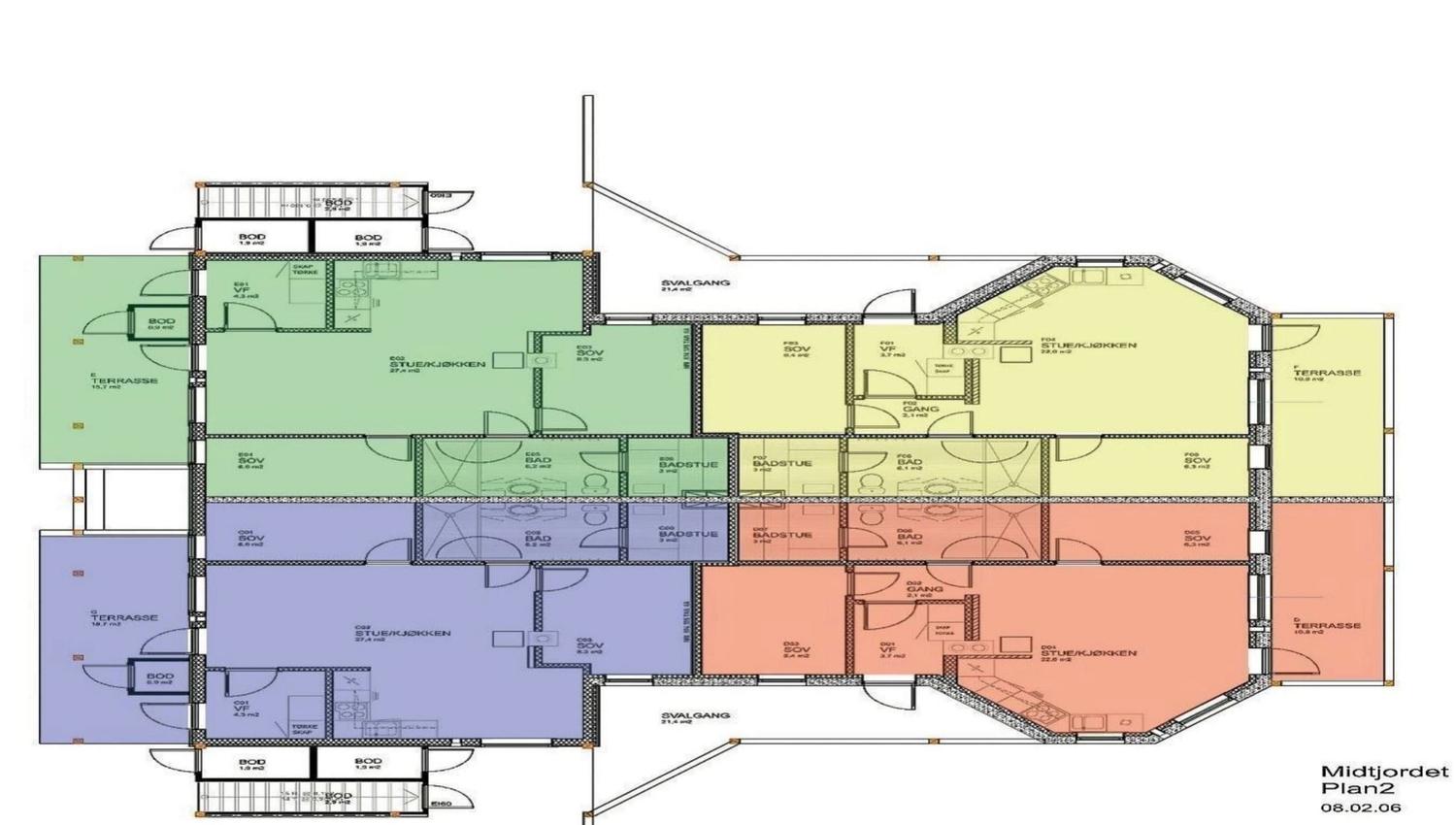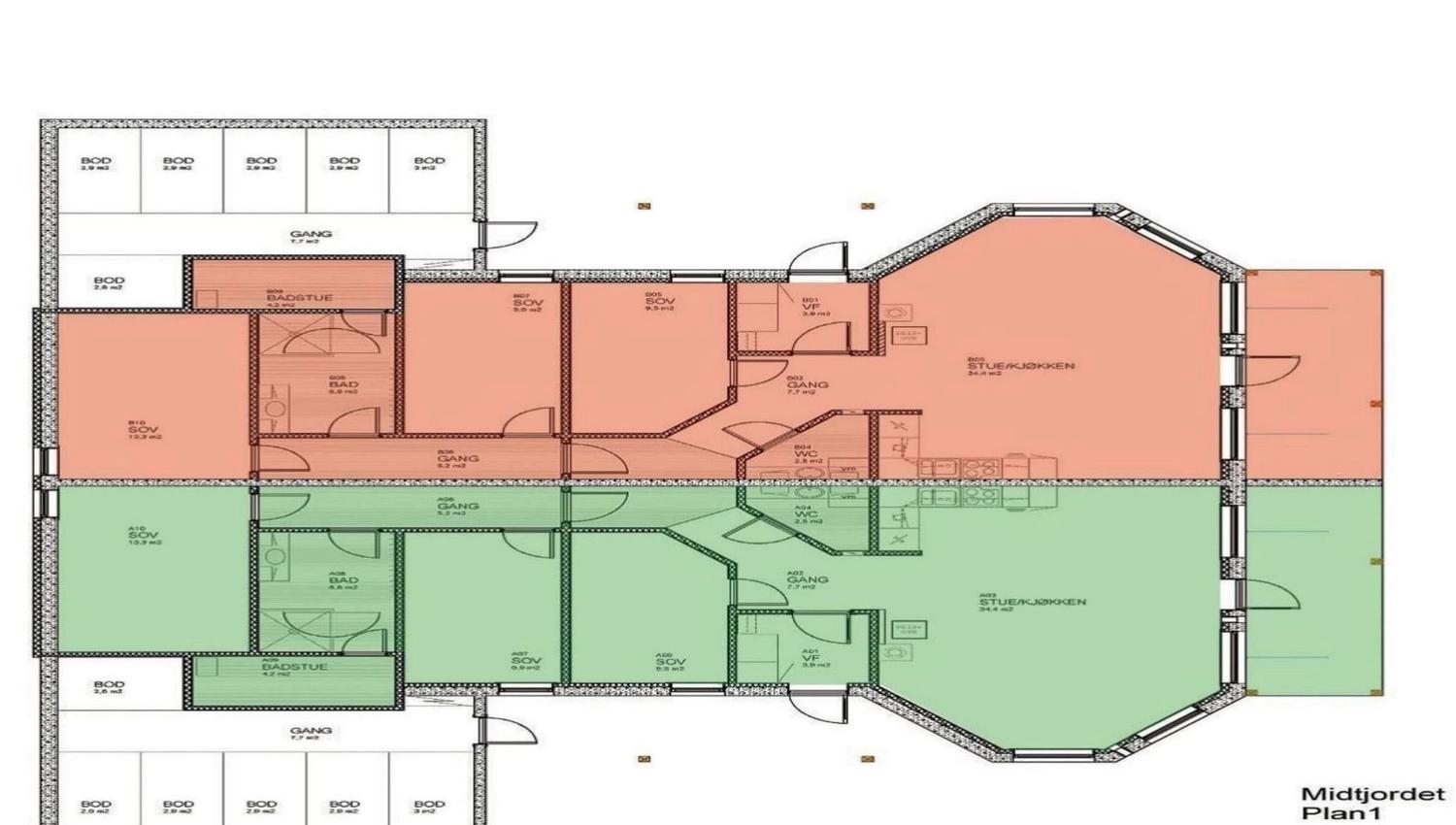 The apartment has 3 bedrooms, of which 2 bedrooms are separated by a sound wall and a door from the living room. Living room/kitchen in open solution of approx. 35 m2, with dining area and wood stove. Bathroom with sauna. Extra toilet with washing machine. Large terrace. Private parking