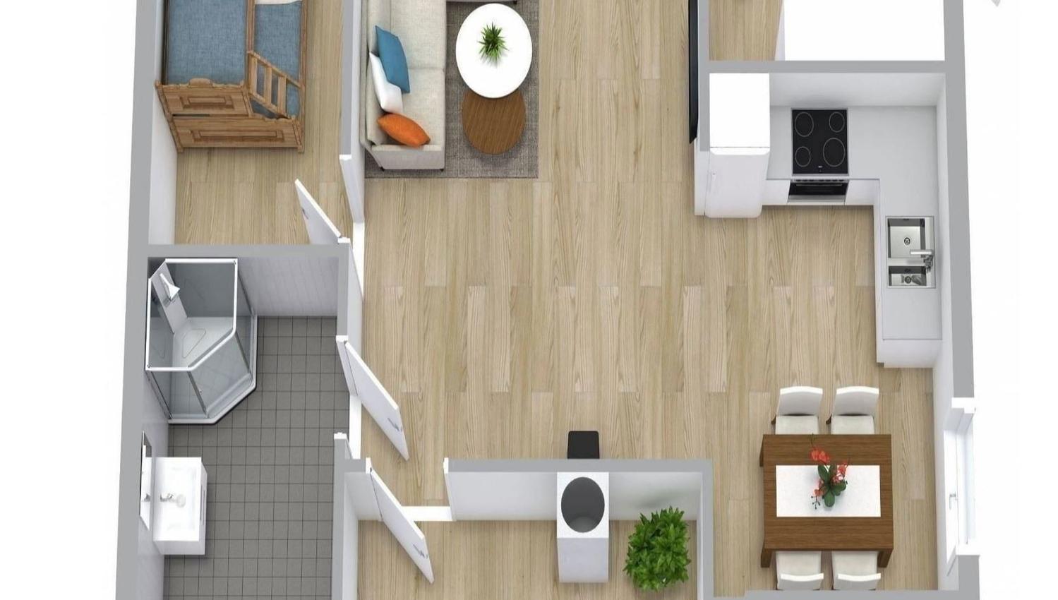 Bedroom 1: Family bunk bed (lower bunk 150 cm wide, and upper bunk is 75 cm wide)