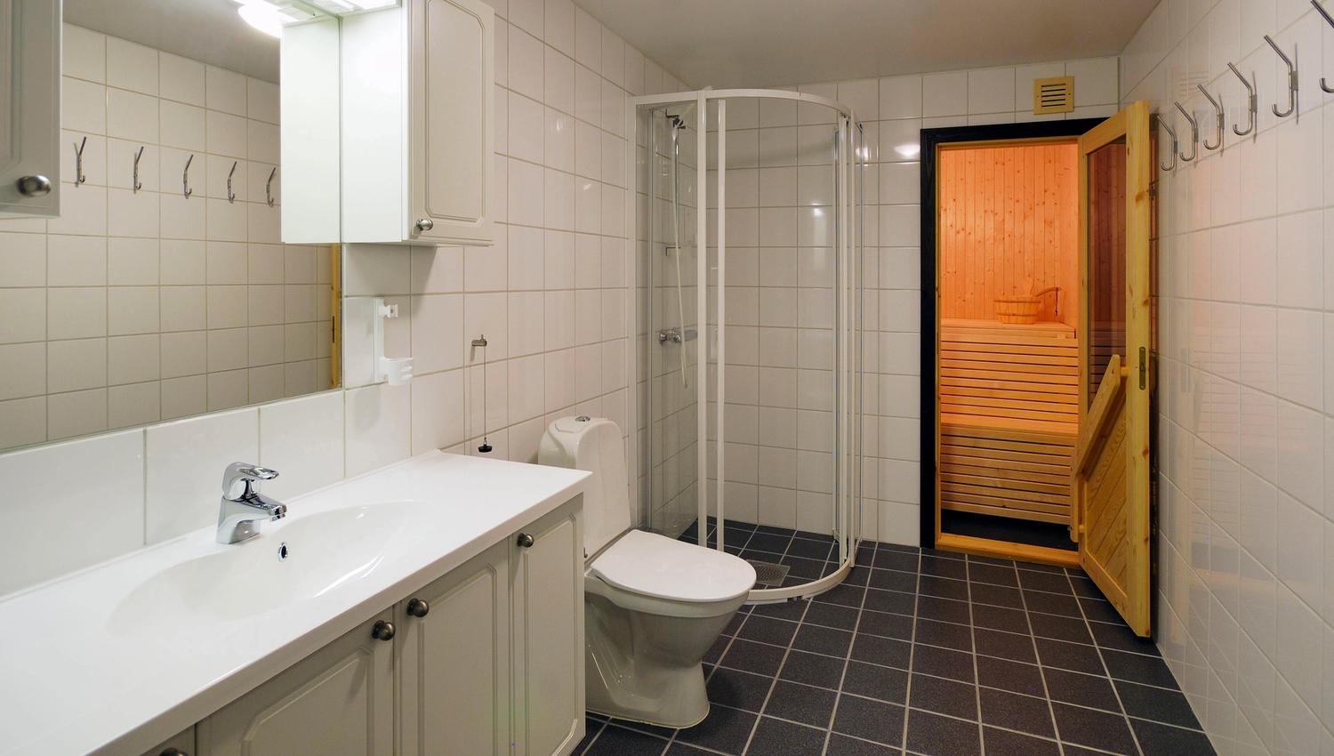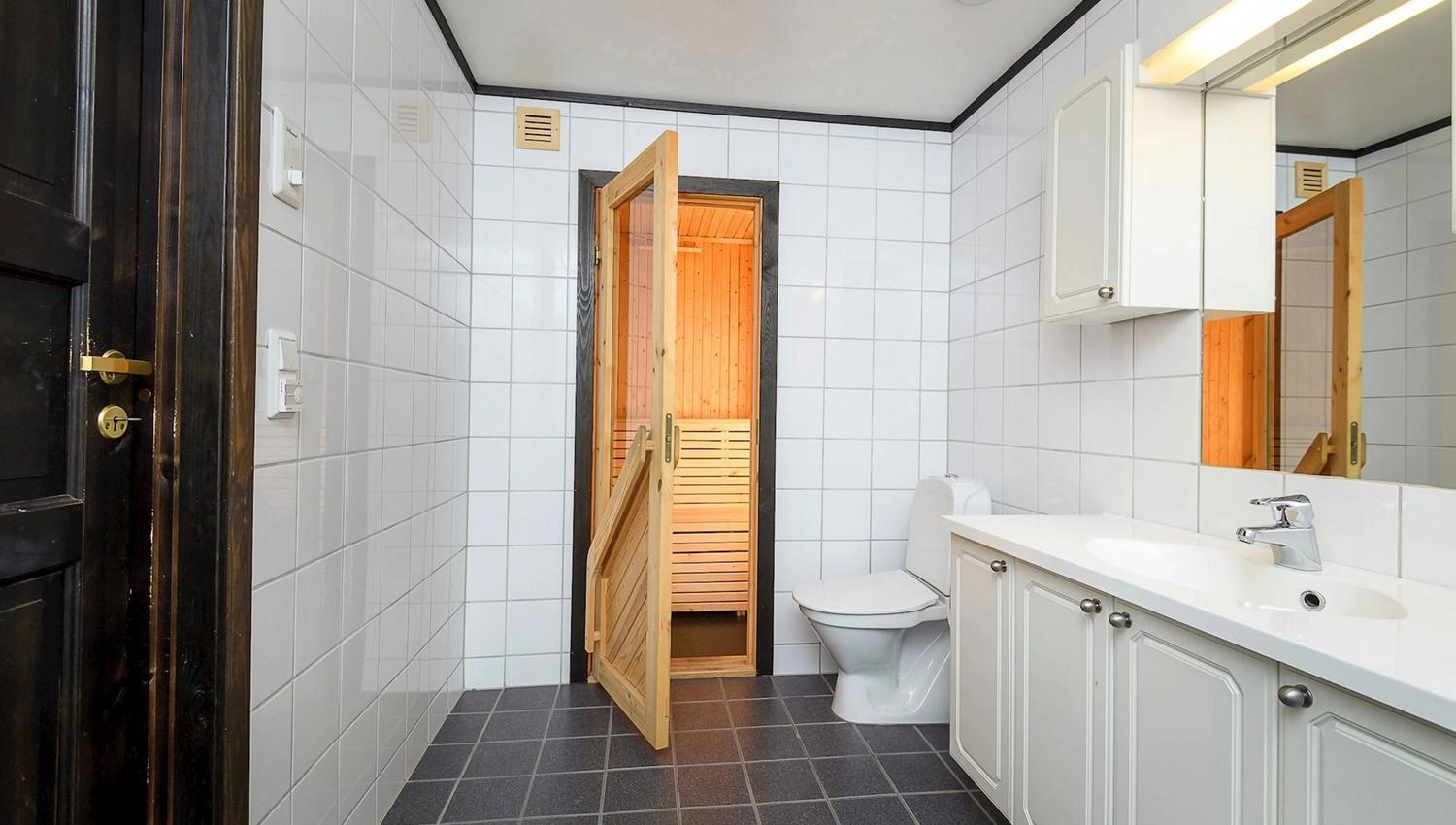 Living room/kitchen in open solution of approx. 25 m2 with dining area and wood stove. The living room is equipped with a flat screen TV. One main bathroom with large sauna.