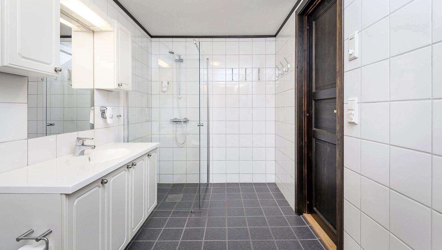 Porch with underfloor heating, drying cabinet and shoe dryer.