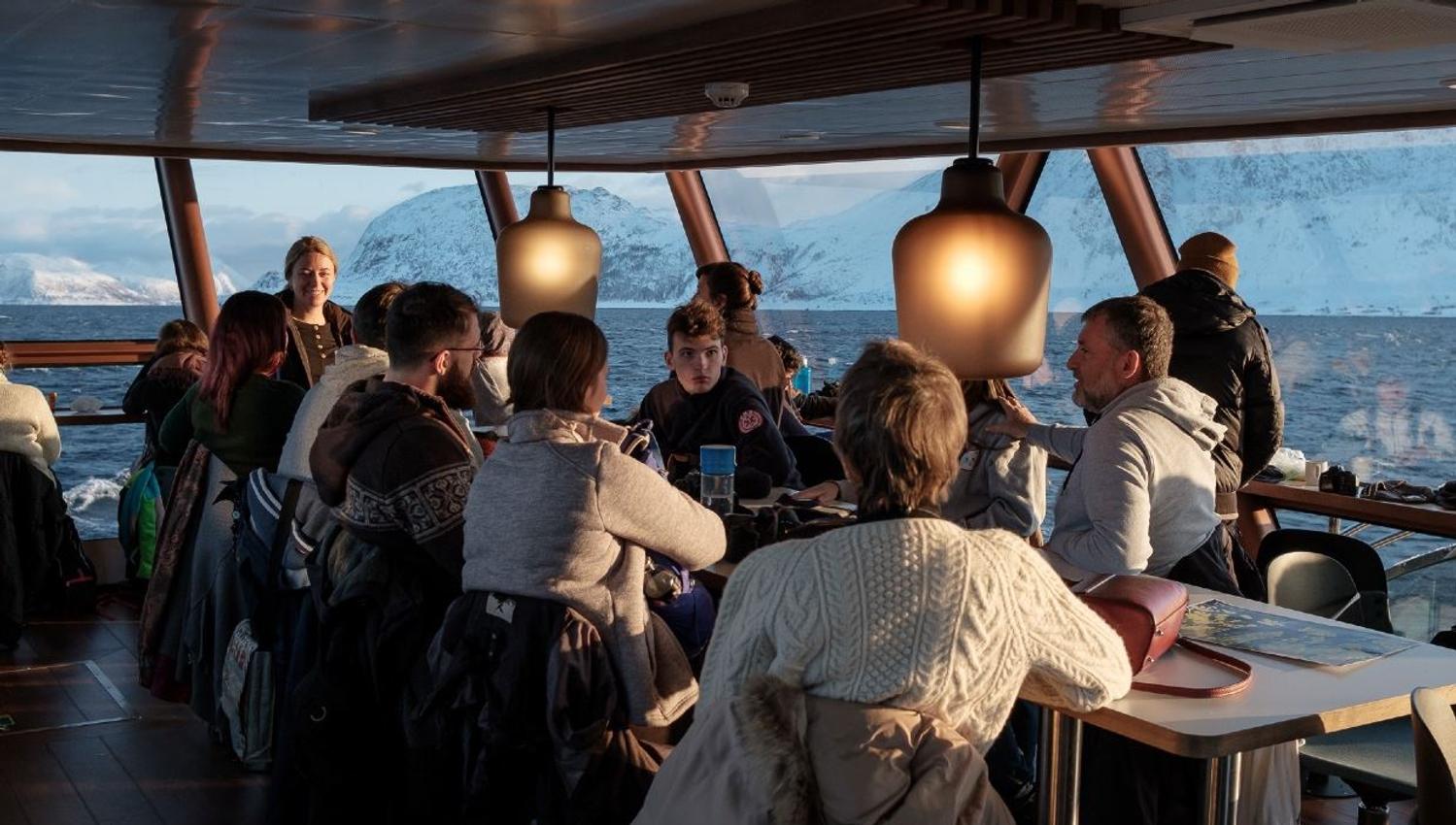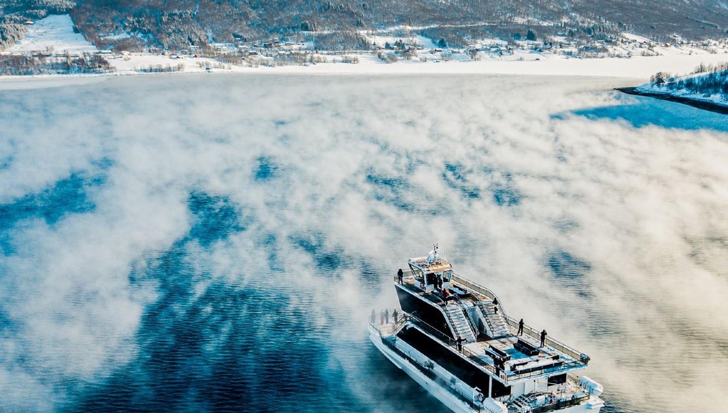 Cruise with us on our hybrid-electric boat and experience the fjords around Tromsø, combining unspoiled nature, wildlife, and local history. From fish below to birds above, enjoy scenic views as we pass historic coastal sites, including a former Cold War submarine base. Step ashore in an old fishing warehouse and learn about the traditions and lifeline of Norwegian coastal communities.