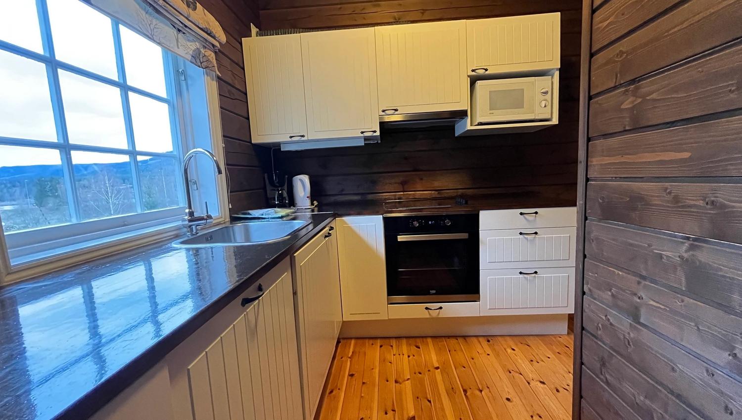 From the cabin you have a view of Hunderfossen family park and Gudbrandsdalslågen. The cabins have a simple standard and there is parking right next to the cabin. The bathroom has been renovated in the autumn of 2021.
