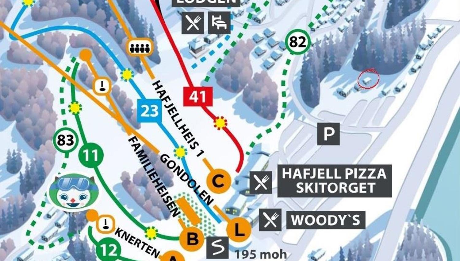 From Bergstad, it takes about 5 minutes to walk to the alpine center in Hafjell. Bergstadhyttene is located 1.1km from Hafjell Hotel. There you check in and get a key to the reserved cabin. Drive south on Hundervegen. You pass Hafjell alpine center, continue forward and about 200 meters on the left side you will find the cabin.