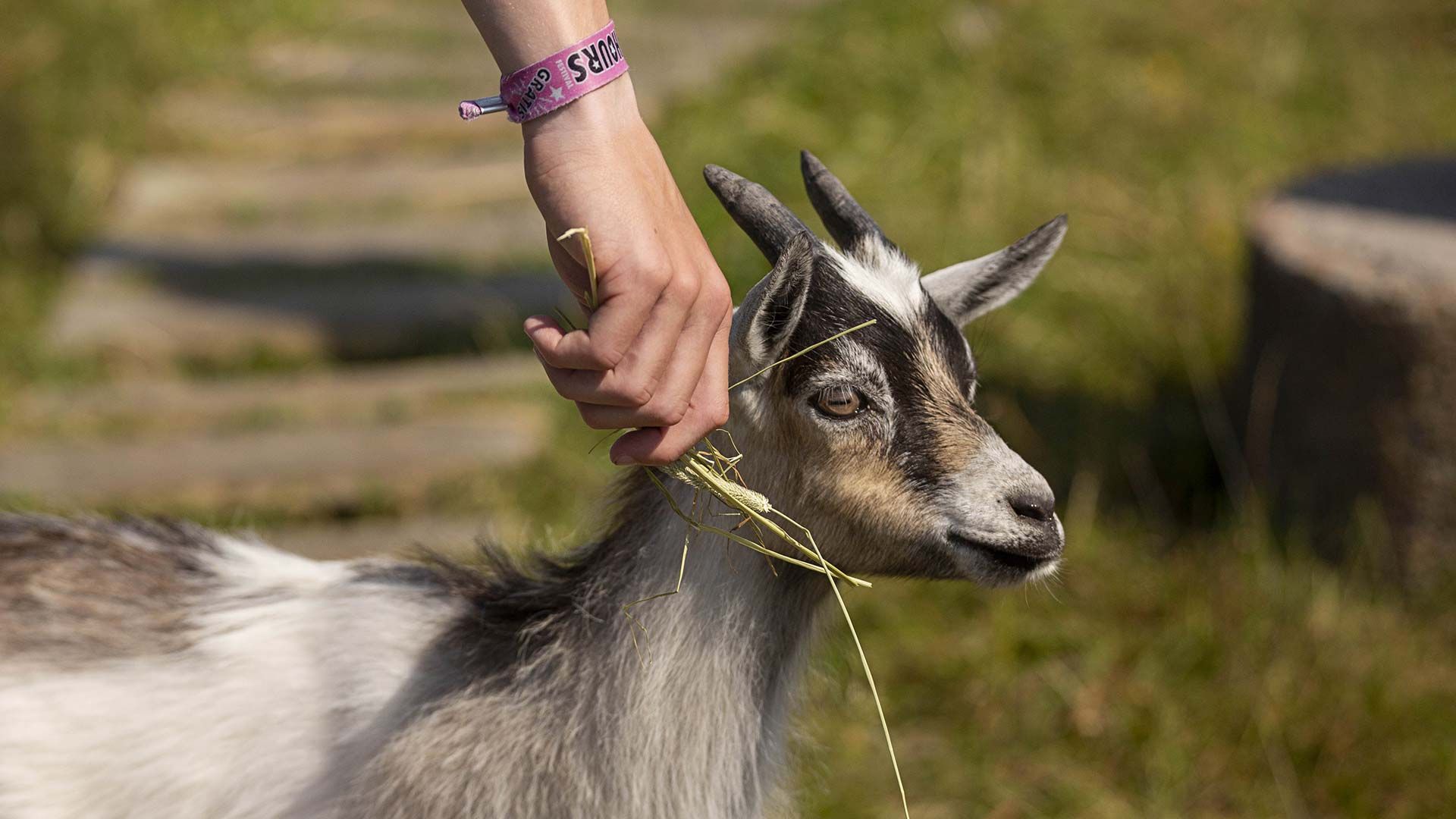 Children's summer farm with Norwegian farm animals and a large outdoor play area.