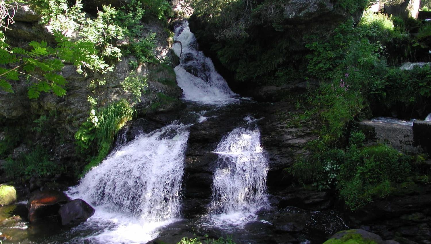 Fotlandsfossen (the Fotland waterfall), located in the cross between fv. 206 and fv. 210) is a distinctive and not expected landscape area in the municipality of Time. The Håelva river has dug itself between the phyllite rock and made the biggest waterfall at Jæren. The rock type is ideal for rich vegetation, attracting insects and birds. Previously, people used to fish for pearl mussels here, however the mussels are now protected. Salmon jumping in the waterfall is a common sight. Running water has been a resource as long as people have been known to use hydropower energy, ever since the 13th century. The remains of a mill can be found above and beneath the waterfall. The two largest buildings have been restored.