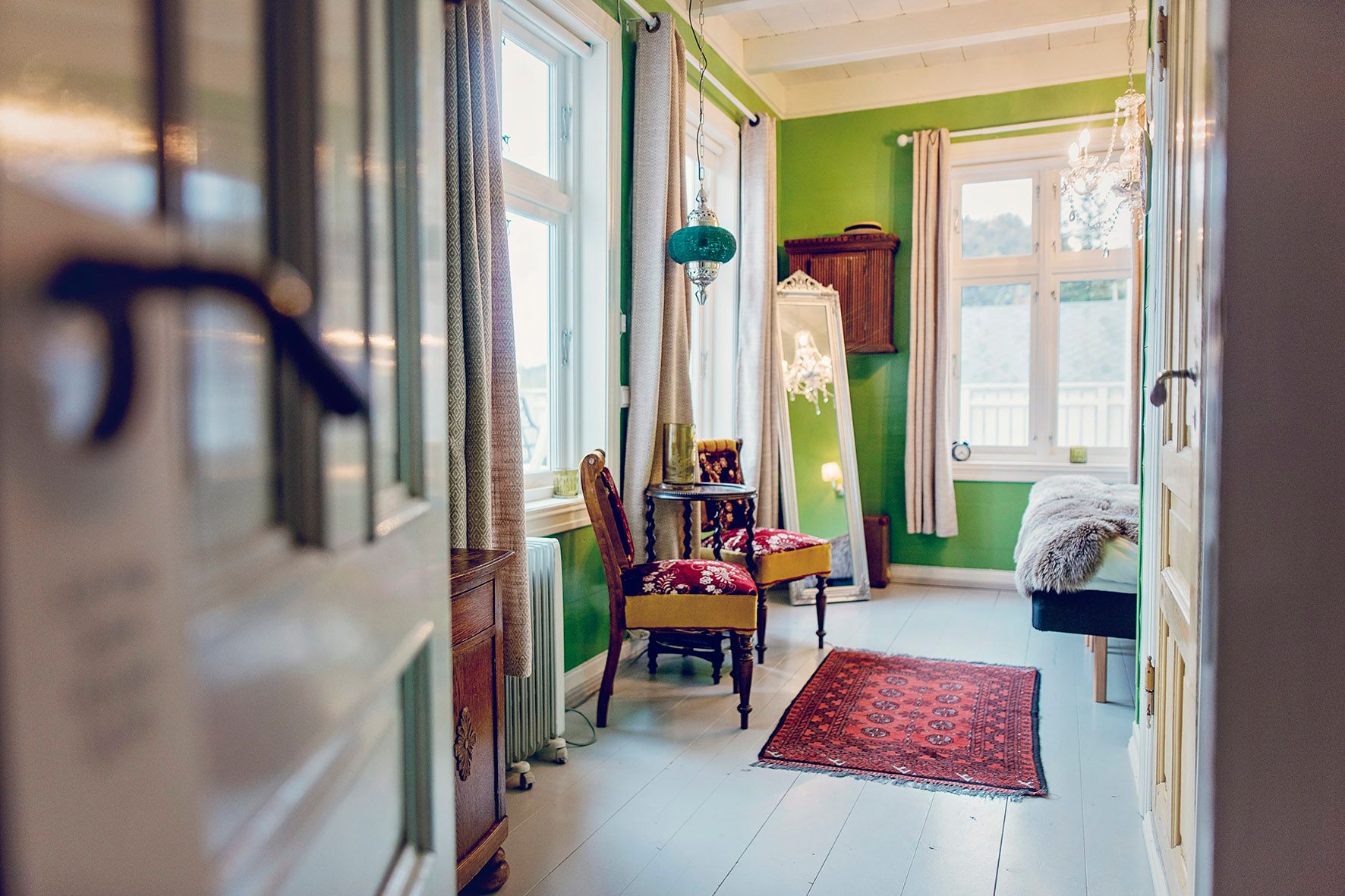 Haaheim Gaard offers 23 individually designed rooms and suites, each with private bathroom. Most bathrooms feature freestanding clawfoot bathtubs, and several rooms overlook the fjord and sunset.