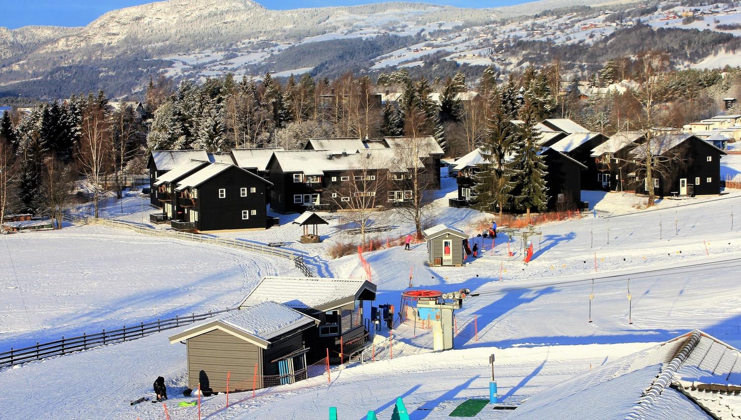 The bathrooms are bright and delicate with tiled showers and toilets. In the living room there is a flat-screen TV with sofa group 3 seats + scaise longue and coffee table. In addition, there is 1 high chair. You have a view from the balcony or terrace of the alpine center or valley. Popular accommodation option for families on ski holidays in Hafjell. Right next to the family area with ski school, ski lift and ski rental.