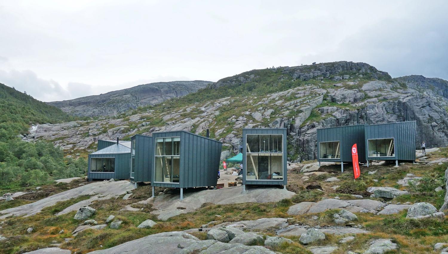 Skåpet is located at Soddatjørn lake in Forsand, and is the gateway to the route network in the Frafjord moors on the south side of the Lysefjord. The unique cabins have a modern architecture that blends in with the magnificent scenery.