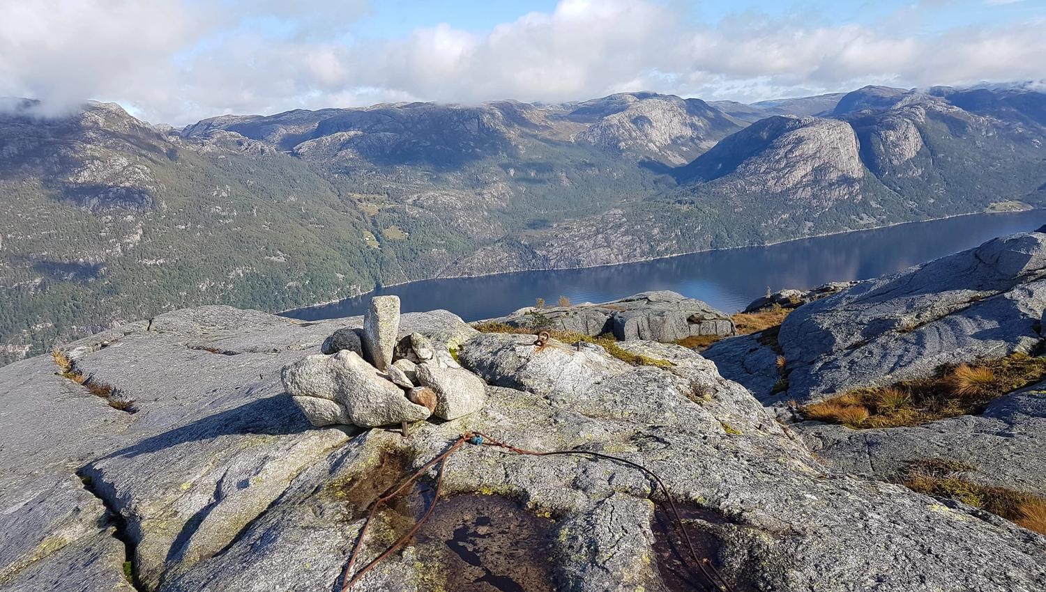 As you gain height, the landscape changes character. Here it is the bedrock that dominates. You pass small idyllic hawthorns. At the top, there is a great view of parts of the Lysefjord. Neverdalsfjellet with Preikestolen, Hengjane and Bratteli lies directly opposite on the other side of the fjord. The return journey follows the same route.