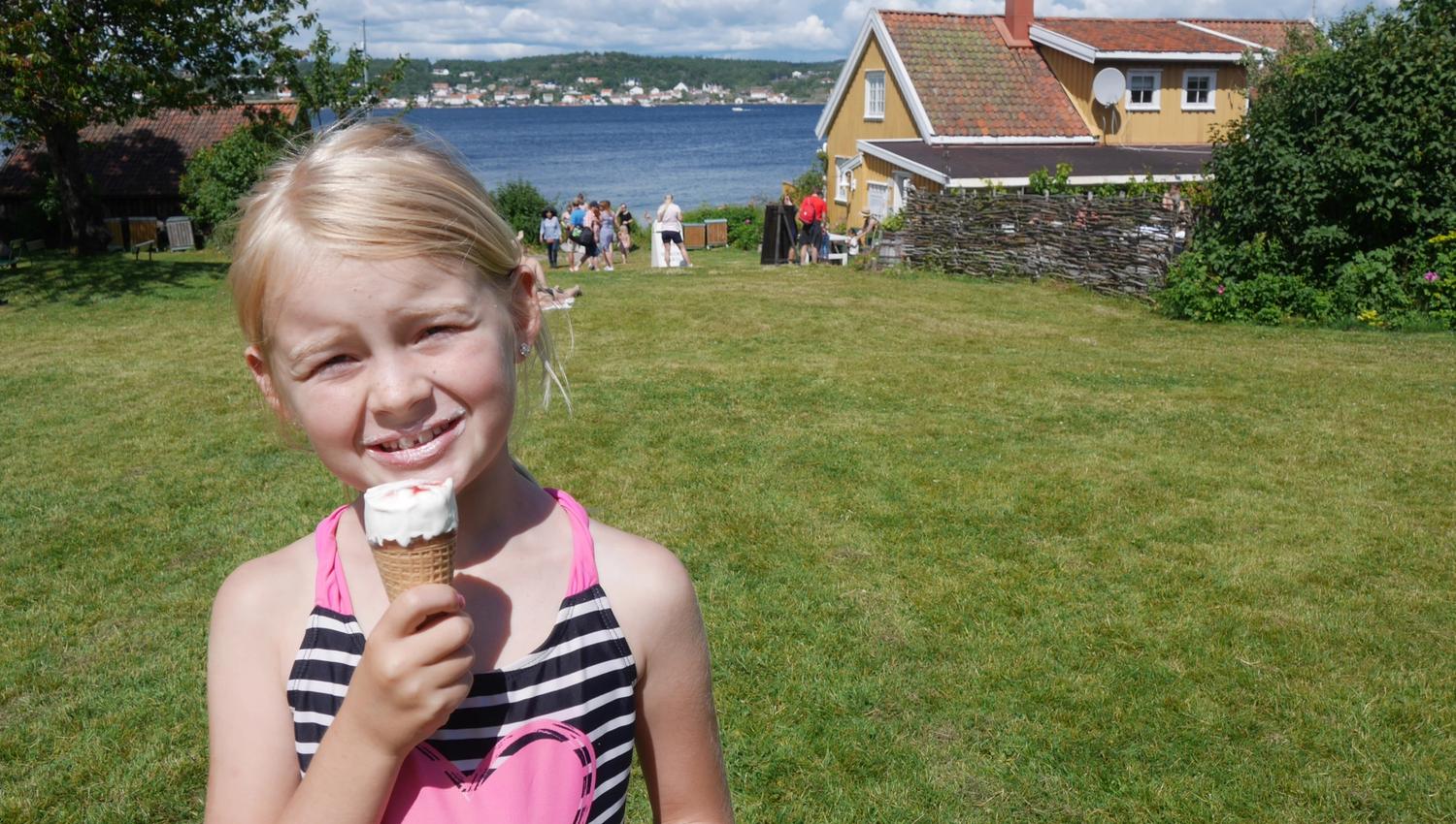 Cafe on idyllic Merdø island, free of cars and the hustle and bustle of city life. Here you can enjoy a light lunch or just coffee and ice cream or an ice cold beer from the beginning of July until mid-August from noon to 6 pm.