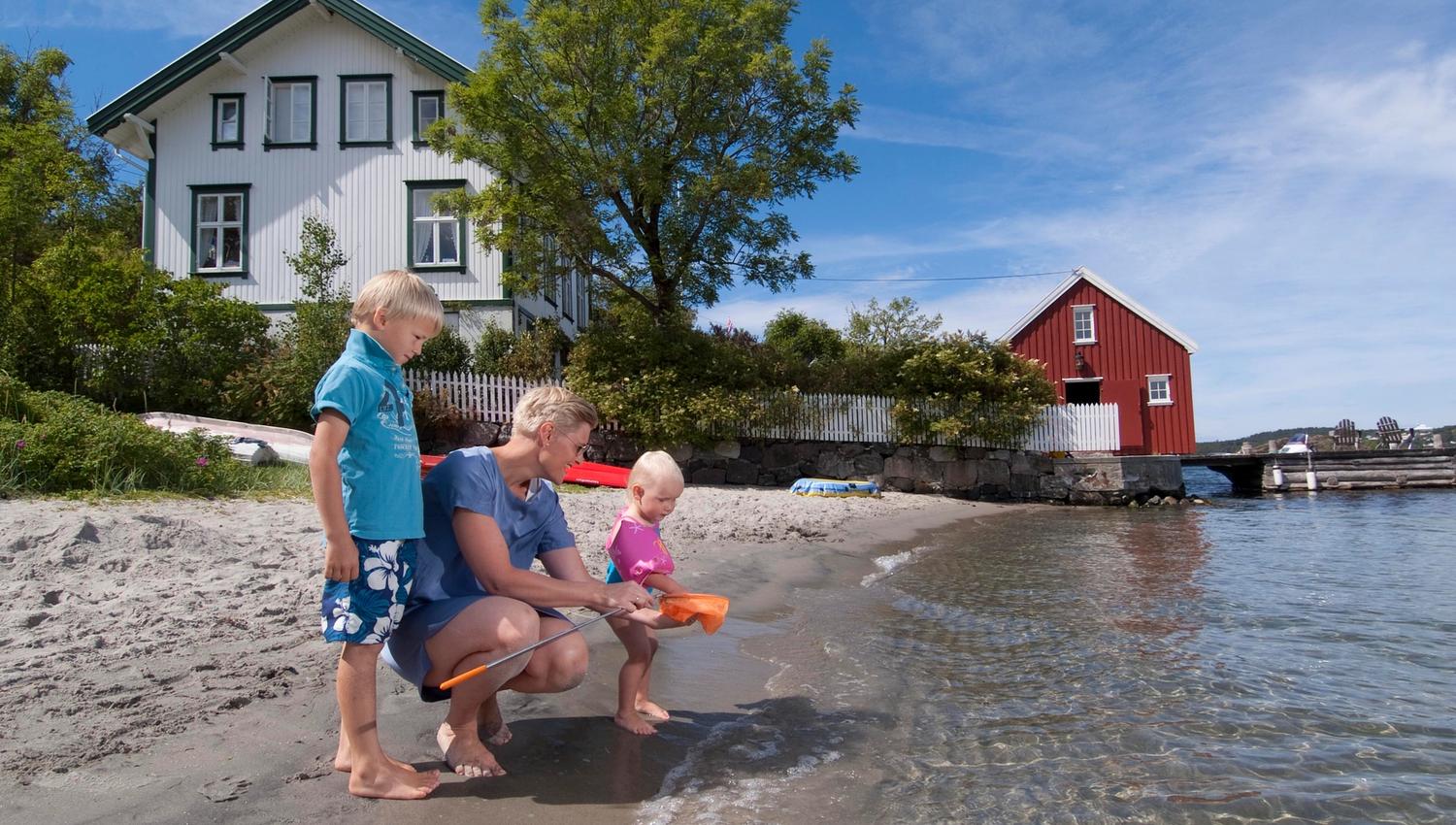 Take a swim on the two sandy beaches, visit the little museum Merdøgaard or take a stroll on the narrow paths on the island to Gravane (old graveyard), Loshytta (pilots cabin) on topp of the island and admire the two lighthouses in the distance.