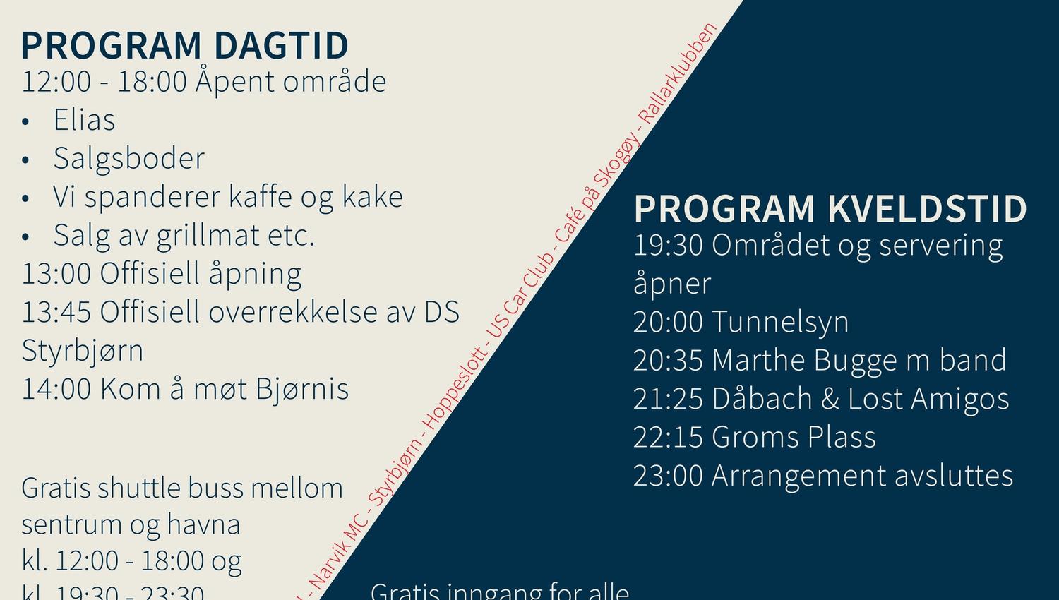 The anniversary celebration will take place at Havnetorget and will be a party for Narvik's residents with activities for children and adults. The program will include speeches, cultural elements and a selection of maritime vessels open to the public to visit. We welcome you and hope you have the opportunity to participate in the celebration.