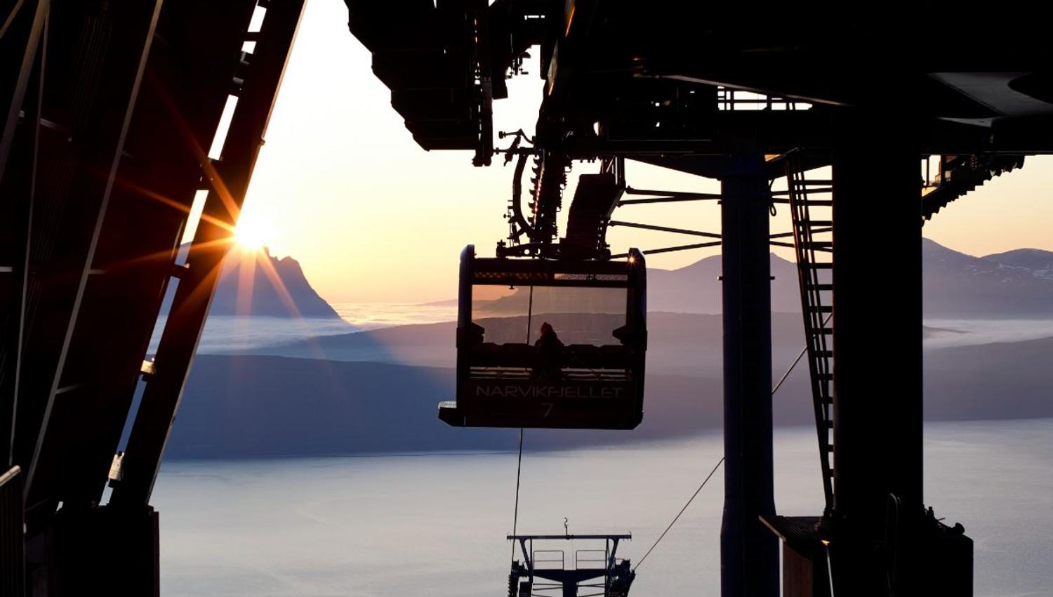 The cable car takes you up to the Narvikfjellet Restaurant 656 masl, which is the perfect starting point for skiing, ski touring, northern lights hunting, snowshoeing and tobogganing in the winter. In the summer you can choose between hiking, cycling, midnight sun experiences, or maybe you perfer a good meal at the Restaurant. From the upper cable car station you get a panoramic view of deep fjords, high mountains, the historic ore harbor and Narvik city, which makes the cable car ride an experience in itself. Remember to bring your camera!