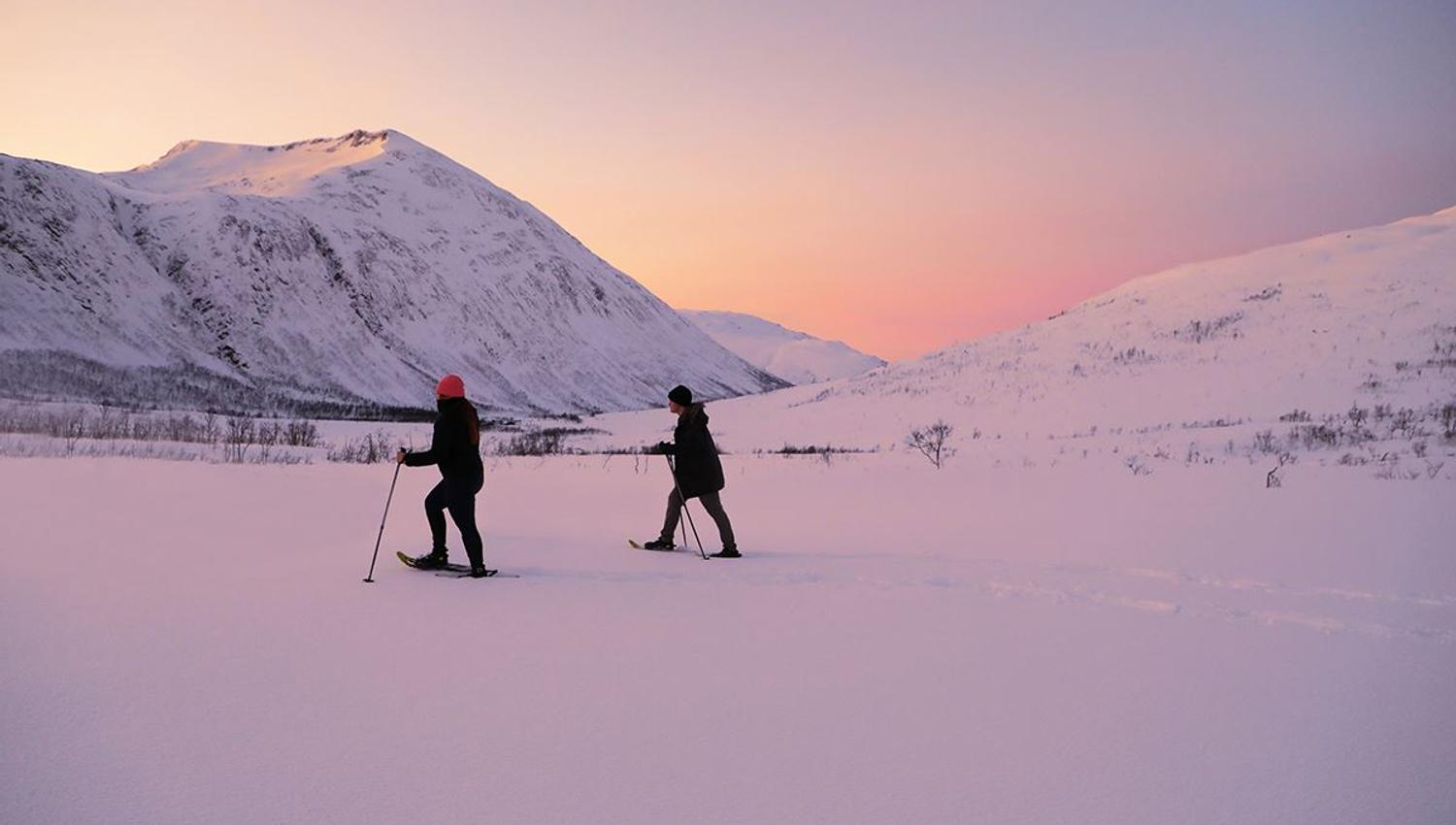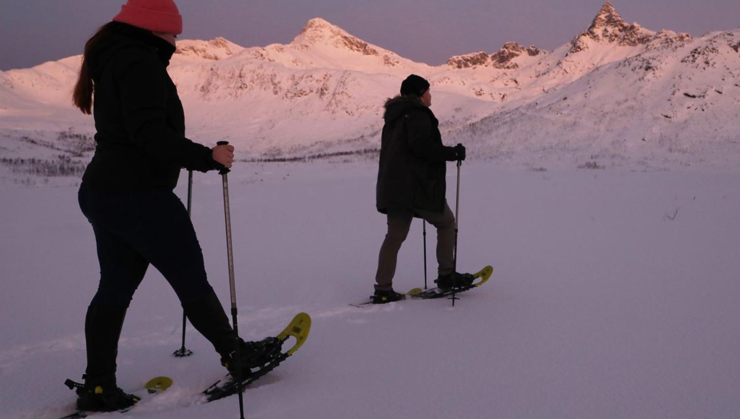 Embark on a magical snowshoe adventure through a winter wonderland tailored to your desires. Our customized snowshoe trips promise an unforgettable journey into the pristine landscapes of Kvaløya, Norway’s fifth largest island.