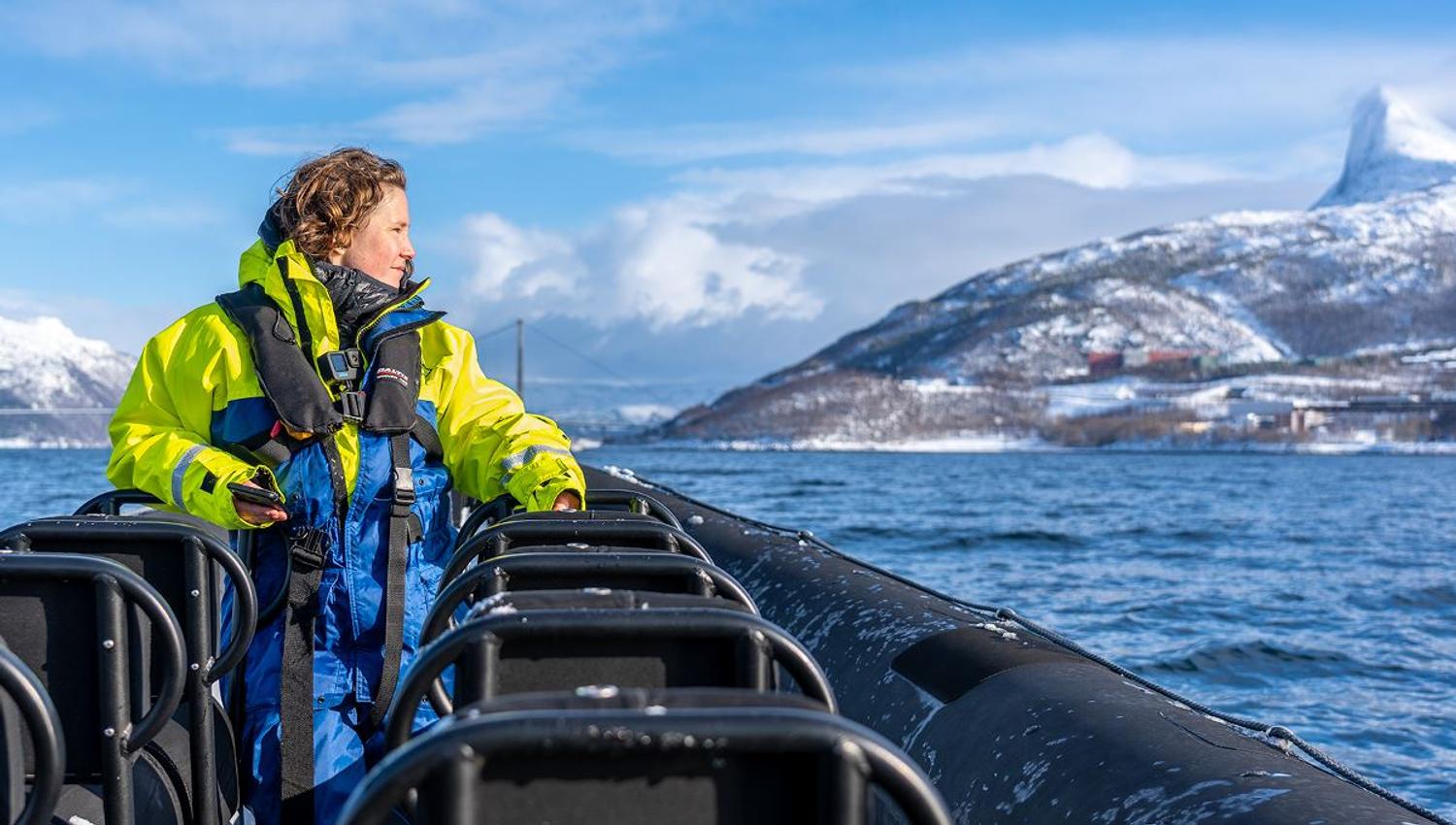 We venture deep into the fjord, close to the Swedish border, where towering mountains rise dramatically from the sea, leading up to the Frostisen glacier at 1,724 meters above sea level.