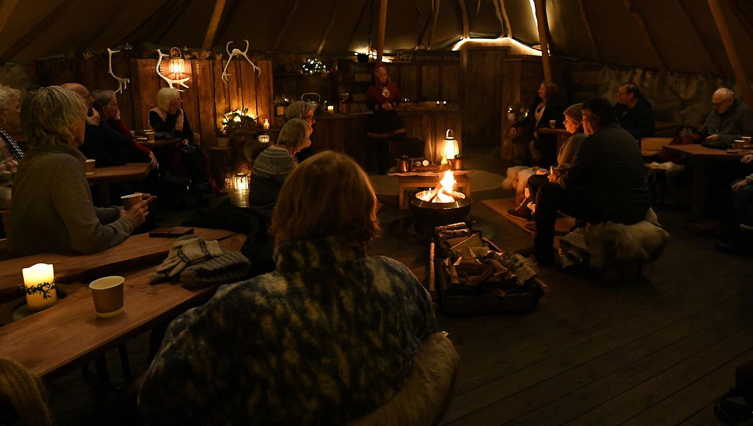 Saltfjell Sami Adventure is a cultural gem located in the heart of Bodø city. Our large lavvu is an ideal gathering place for storytelling, where you also have the opportunity to partake in Sámi culinary culture. All your senses—taste, smell, hearing, and touch—will be engaged around the warm fire.
