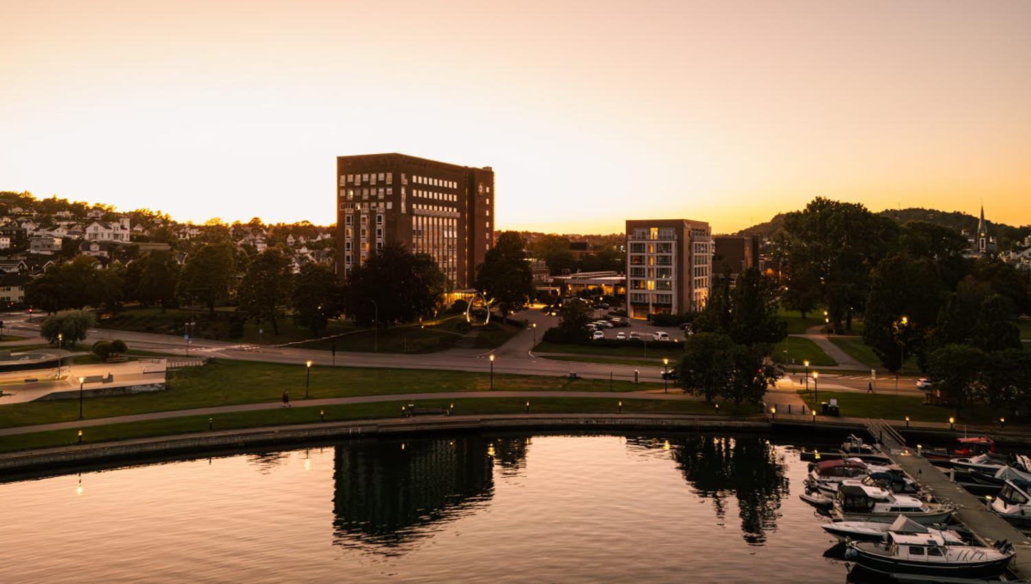 The hotel is situated centrally, close to Sandefjord town centre and with a magnificent view over the harbour area. Three 18-hole golf courses are found within 11 minutes with car form the hotel. Only 10 minutes from Torp, Sandefjord Airport - with a regular train-connection. The hotel is one of the country's leading conference-hotels.
