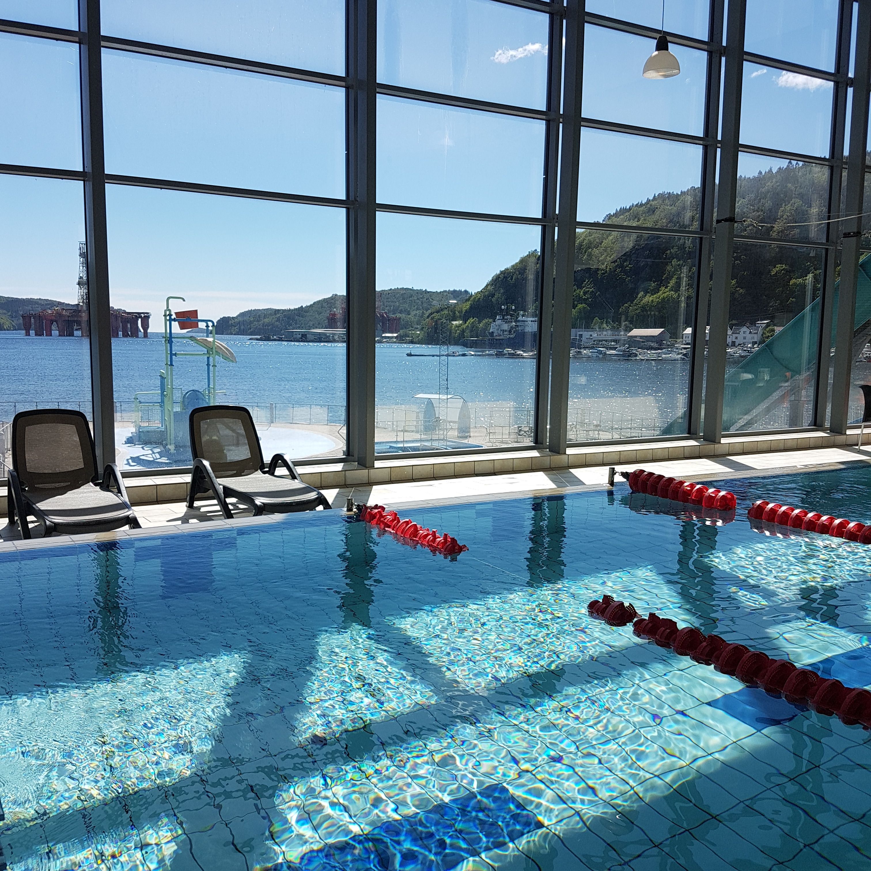 Sørlandsbadet is a water park in Lyngdal that has a small and shallow pool for small children, diving boards and a deep pool for older kids and adults and a wave pool with counter current canal.