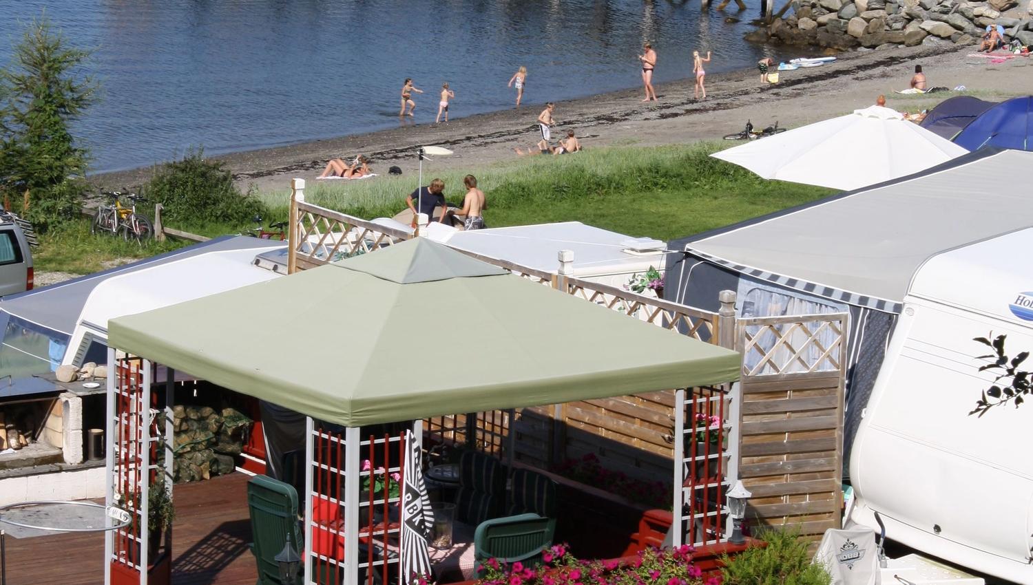 Storsand Gård Camping is situated 17 km northeast of Trondheim, adjacent to both the Trondheimsfjord and the E6 highway. Amenities include a football field, boat rental, fishing pier, children’s play area, camp store and beach.