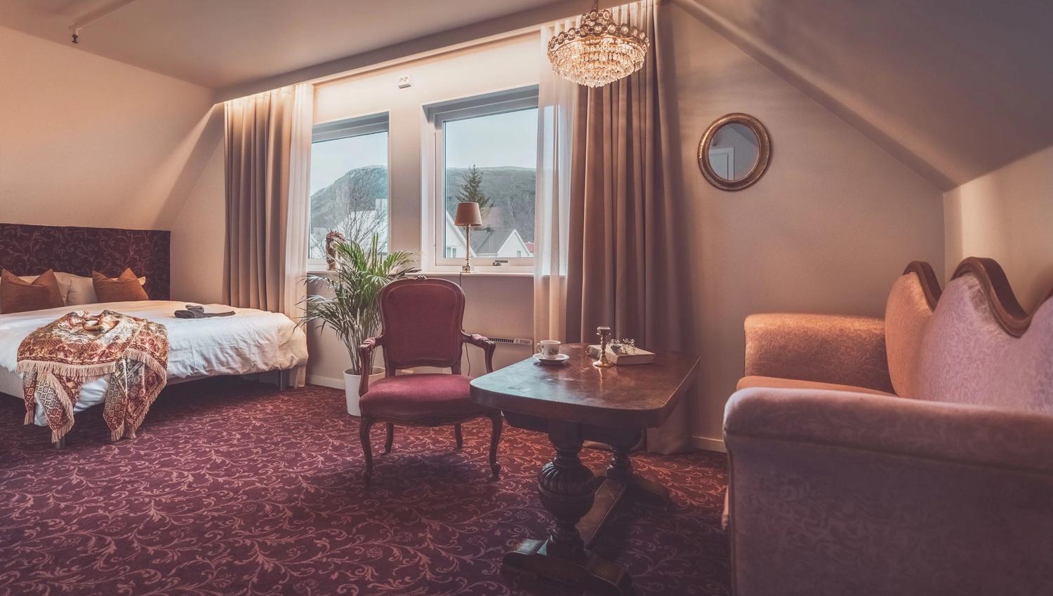Welcome to Villa Havblikk Hotel – a unique and charming boutique hotel beautifully located between the Arctic Cathedral and the Fjellheisen Cable Car in the heart of Tromsdalen. Here, history, comfort, and personalized service come together to create a truly memorable stay. Historic Ambience with Modern Comfort Villa Havblikk is housed in a classic Norwegian wooden building from 1917, where we have carefully preserved the authentic vintage style while incorporating modern amenities. Each room is uniquely decorated with attention to detail, ensuring our guests enjoy high quality, warmth, and hospitality in a setting full of charm and history. More Than Just a Hotel In addition to our comfortable rooms, we invite you to enjoy a delightful dining experience in our café and bar, where we serve delicious meals, fresh baked goods, and refreshing drinks in a cozy atmosphere. Villa Havblikk Hotel also offers an elegant event space, ideal for baptisms, confirmations, memorials, birthdays, and other special occasions. Our dedicated team ensures that your event is carried out with care and excellence. A Hidden Gem in Tromsø – we look forward to welcoming you!